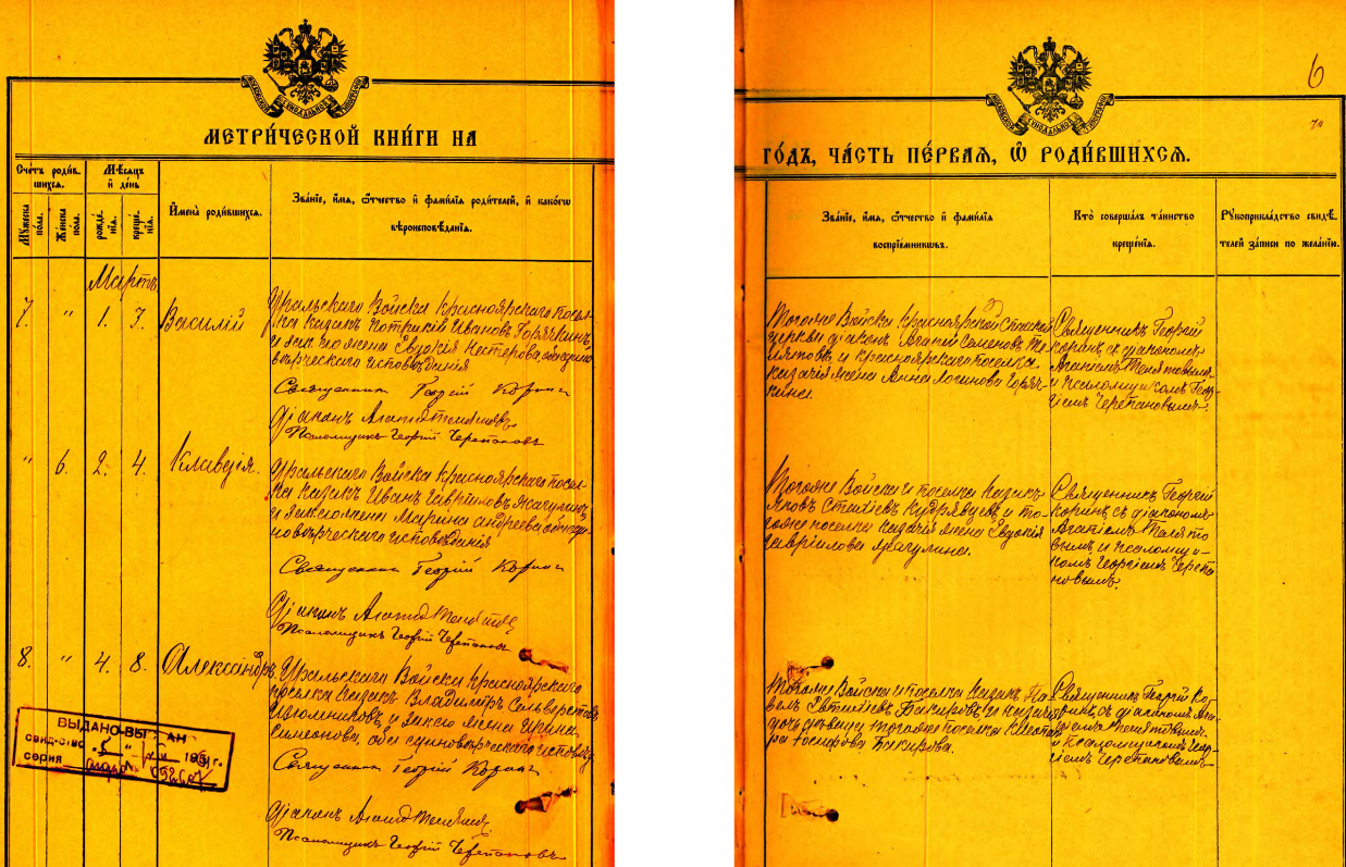 В МК 1874 года январь 6\10, есть запись о рождении Евгении родители: казак Красноярского ф-та Владимир Селиверстов Изюмников и з.ж.е.Феодосия Куприянова.