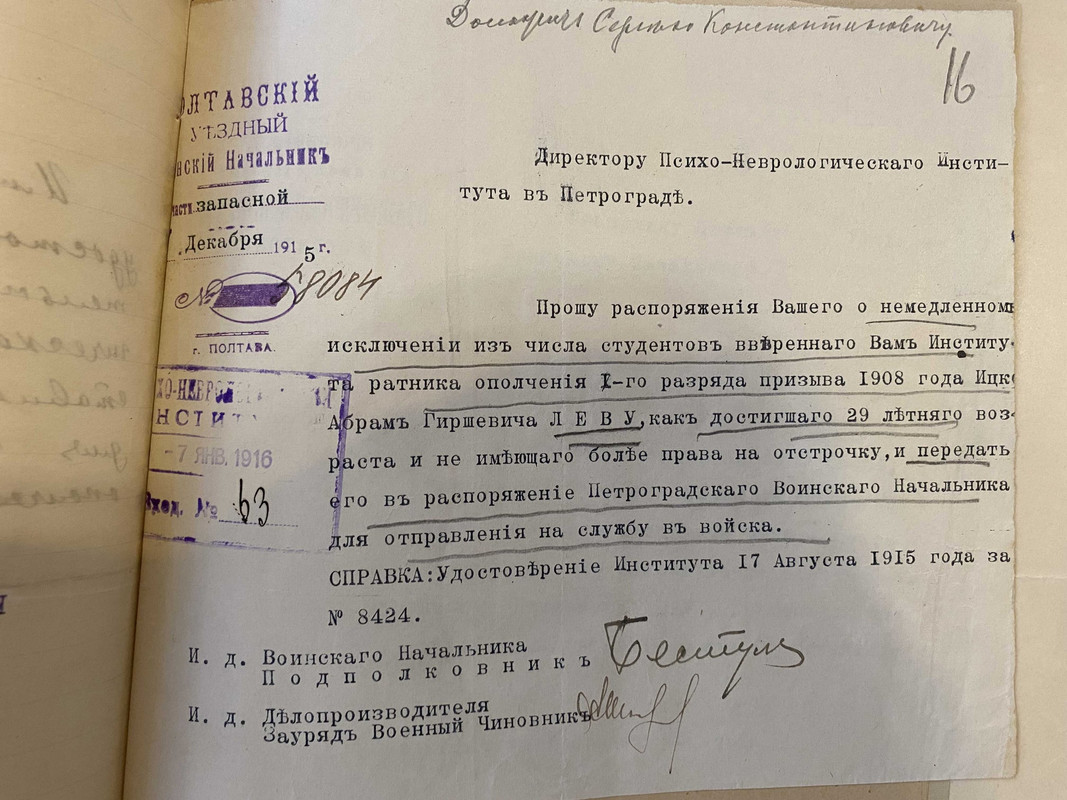 И видимо, до 1915 года находился в Петербурге. А потом ему исполнилось29 лет и он не смог больше "косить от призыва" https://postimg.cc/gallery/CqGvkkk