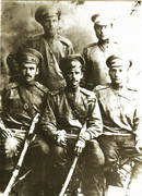 На представленной фотографии, крайний слева сидит: казак, уроженец Чижинской станицы Шилинского поселка Мартынов Александр Алексеевич, с однополчанами по Первой Мировой войне.