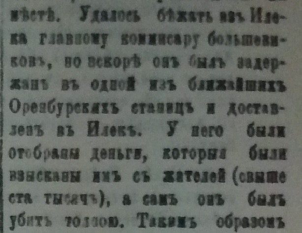 С комиссаром Ходаковым история действительно до конца не ясная. В одном из источников об Илецком бое в марте 1918 года сказано, что сам Ходаков ускакал до начала боя из Илека с собранной со станицы контрибуцией. Казаки за ним бросились в погоню, но по всей видимости, не догнали. Кстати конные красноармейцы почти все смогли убежать из станицы. Остальной отряд был разгромлен. А Ходаков мог собрать или встать во главе нового отряда. В "Яицкой Воле" упоминалось, что на помощь отряду Ходакова в Илек со стороны Мустаевской станицы шел новый отряд красноармейцев в 200 человек. Но узнав о разгроме своих товарищей в Илеке этот отряд повернул обратно. Вполне возможно, что Ходаков возглавил этот отряд и привел его в Оренбург.